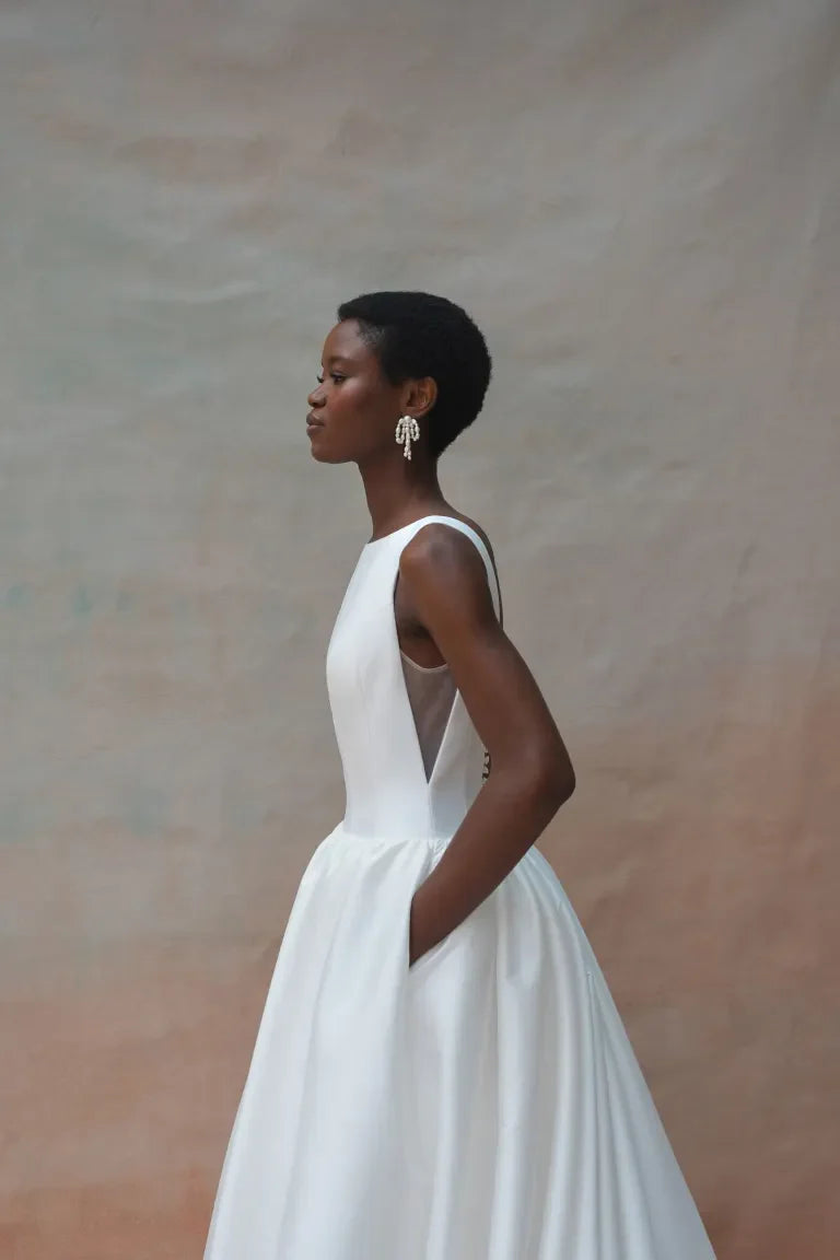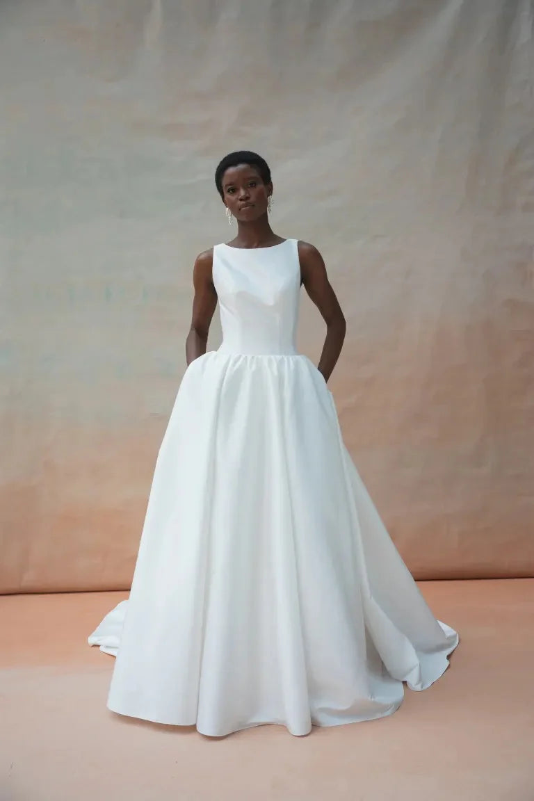 The Audrey gown is as fresh as she is classic. Featuring an elegant boat neckline, an impossibly flattering subtle drop waist, and a dramatic ball skirt, the overall effect is truly timeless.